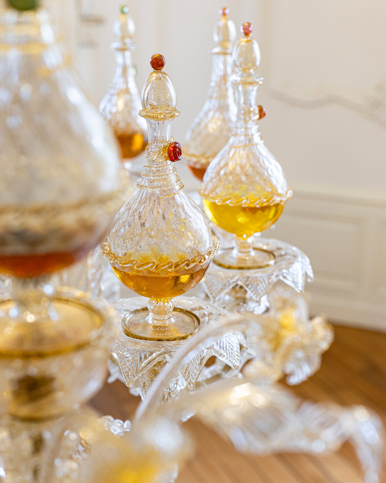 Dessiné par Mina Gautier elle-même, façonné à la main dans les ateliers de Murano, il incarne l’âme de notre parfumerie sur mesure.